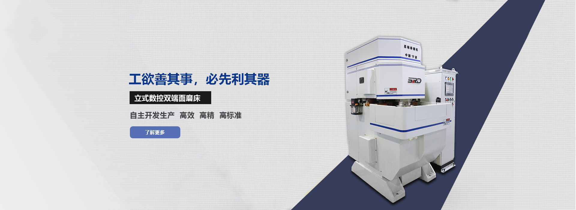 公司简介COMPANY PROFILE j9九游会app坐落于甬城一宁波,是浙江省唯一的一家集研发、生产、销售于一体的超硬磨具和数控磨床的生产企业。九游会备用网站于 2008 年成立至今,先后推出了陶瓷、树脂结合剂的 CBN 、金刚石砂轮; 2011 年成功合并九游会数字站,继而成立了双端面磨床的研发和生产项目。 2013 年隶属于公司的第一台双端面磨床成功下线,并完成首台套的销售。j9九游会app以宁波为中心,先后在上海、河南设立了生产和配套基地。 多年的技术积累和研发经验,造就了九游会备用网站的双端面磨床完全达到国内外同行业的先进水平;凭着精度高、效率快、易操作、服务好等优势,设备走进市场马上得到了广大客户的高度肯定和好评。九游会数字站的陶瓷 CBN 、金刚石系列砂轮在市场上已经获得各行业高度的赞赏和评价;树脂 CBN 、金刚石系列砂轮在市场上已达到行业领先的重要位置。j9九游会app本着立足于客户、服务于客户、发展于客户的准则,先后与国内外的航天、军工、制冷、液压、轴承、汽车零部件、磁性材料等知名企业产生了重要的业务链接。 ..